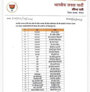 भोपाल, बीजेपी के शहर अध्यक्ष रविन्द्र यती ने आखिरकार जिला कार्यकारणी की औपचारिक घोषणा की है। रविवार देर रात बीजेपी की शहर कार्यकारिणी के पदाधिकारियों की सूची जारी हुई। इसमें जिन नामों पर विवाद बना था लगभग उन सभी को सूची से पृथक किया गया हैं।